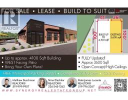RARE VACANT LAND in thriving Essex! CD2.2 zoning with approx. max building envelope of 4,100sqft + west facing patio offers exciting opportunity for so many! Capitalize on the oversized FREE municipal parking out back and the high daily traffic counts. Need more sqft? The adjacent BUILDING is also AVAILABLE for sale adding approx. 3,500sqft (7,600sqft combined). It's a fully updated, open concept commercial unit w/high ceiling schedules, rear ground level loading area, lower storage providing an excellent opportunity for a vast majority of end users. Some of the updates include: 2 HVAC, torch-down roof, electrical, plumbing, LED commercial lighting throughout, flooring, drywall, paint and more! Essex hasn't seen a better value when comparing size, updates, location and price! *Buyer to verify servicing, zoning, restrictions, other. Contact L/S for full details on this unique opportunity! (id:50886)